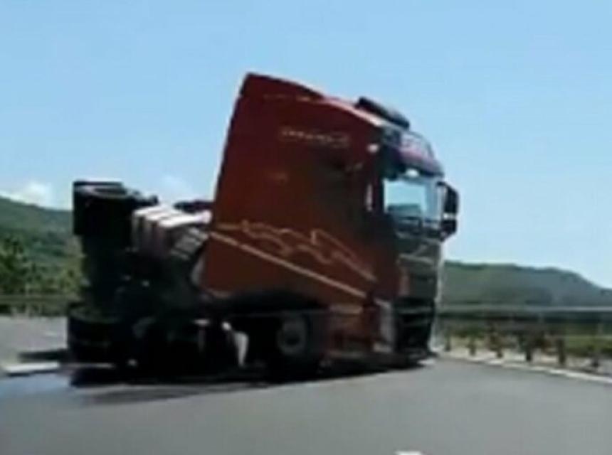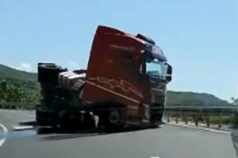 Put je prekriven gorivom, koje je iscurilo iz rezervoara kamiona sa cisternom, iz kojeg se nije izlila sumporna kiselina.