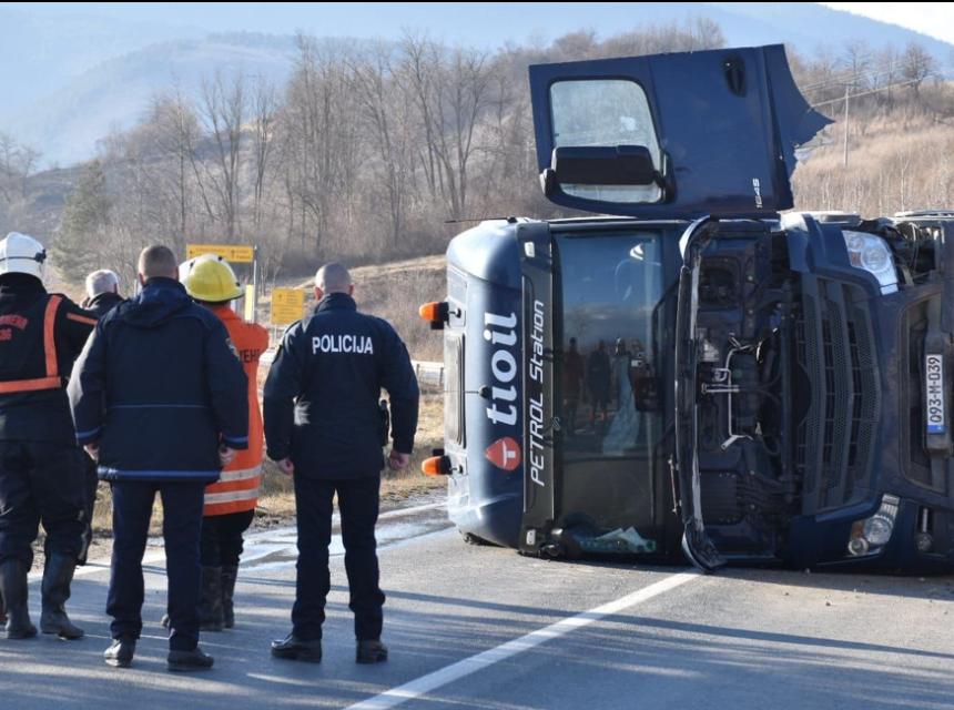 Na putu Bugojno - Kupres dogodila se saobraćajna nesreća nakon što se prevrnula cisterna s gorivom.