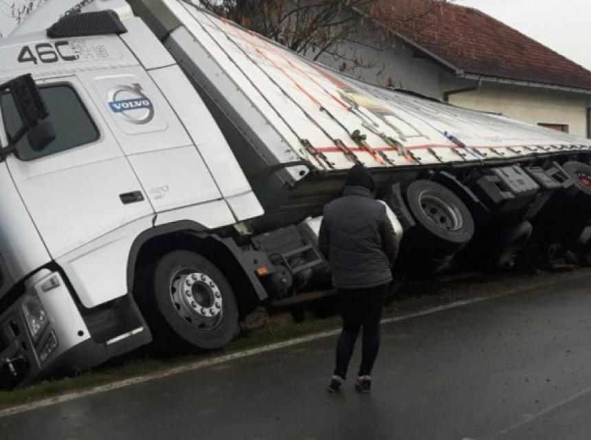 U mjestu Plešniku u Hrvatskoj u cik zore se prevrnuo kamion rumunske registracije.