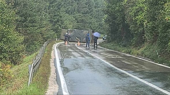 "U nesreći je učestvovalo jedno teretno motorno vozilo. Totalna je obustava saobraćaja, a jedna osoba je prevezena na ukazivanje ljekarske pomoći", kazali su iz MUP-a ZDK.