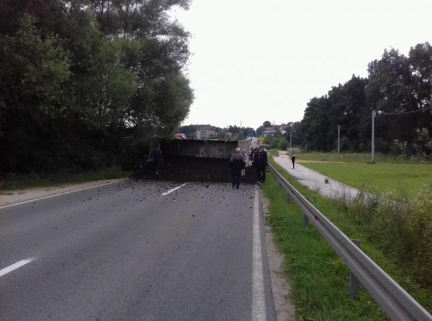 Zbog prevrtanja teretnog kamiona koji je prevozio 20 tona uglja, saobraćaj na magistralnom putu Tuzla – Doboj u mjestu Dobošnica, kod Lukavca, je u potpunom prekidu.