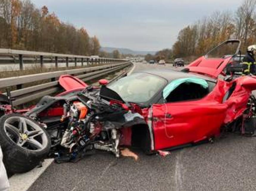 Automobil se zaustavio nekoliko stotina metara dalje, a vozač je samo lakše povrijeđen. Njegov skupocjeni SF90 Stradale potpuno je uništen. Šteta iznosi oko 450.000 eura.