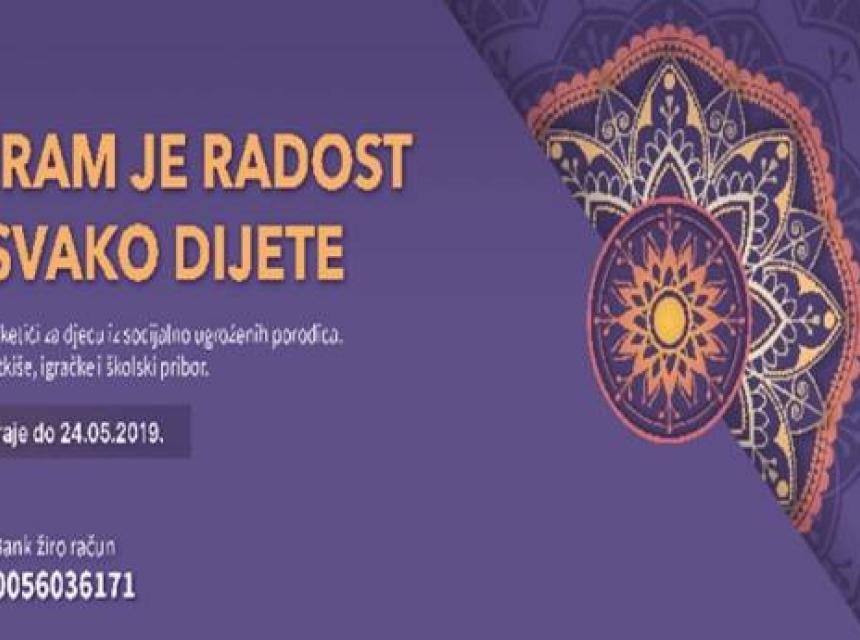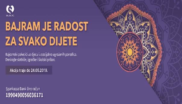 Humanitarna organizacija studenata "Ruku na srce" pokrenula je projekt pod nazivom "Bajram je radost za svako dijete", a cilj je prikupljanje i podjela bajramskih paketića za mališane iz socijalno ugroženih porodica.