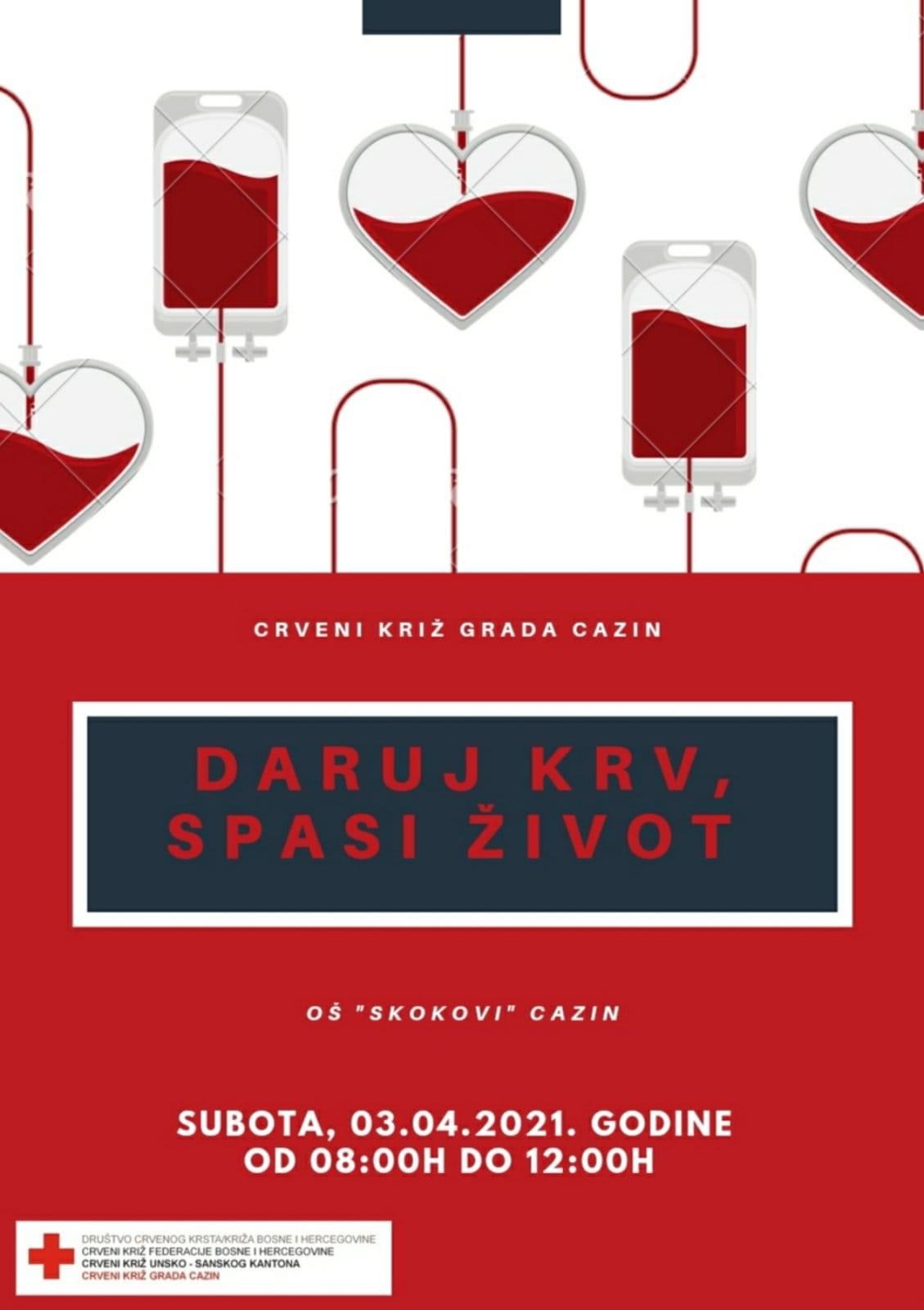 Crveni križ grada Cazina organizuje novu akciju dobrovoljnog darivanja krvi.