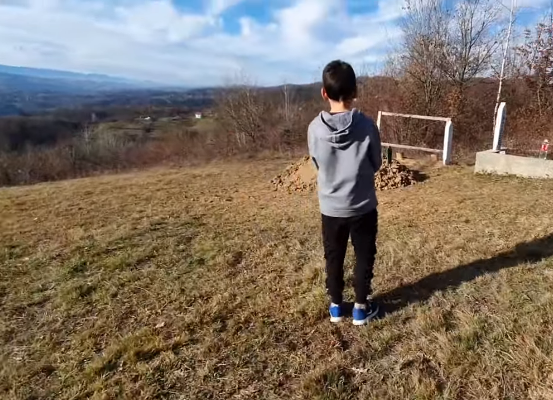 Dok idemo do mezarja, govori da je sedmi razred, da igra nogomet i da mu u školi dobro ide matematika.