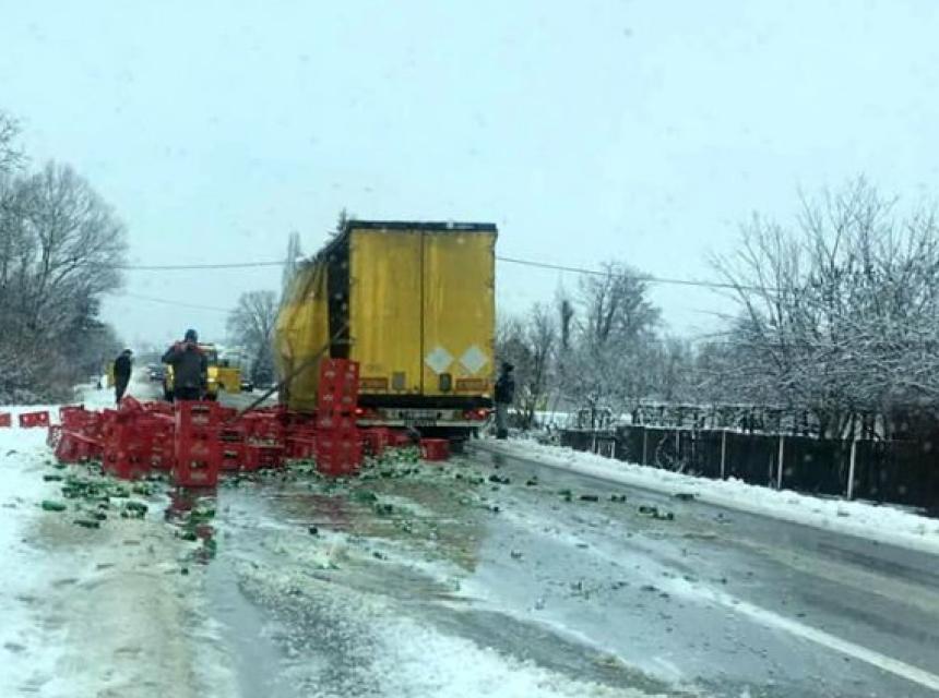 Novi snijeg i klizavi kolovozi najviše nevolje zadaju vozačima. To je jutros oko 9 sati iskusio i Banjalučanin Đ. N. (49), vozač kamiona MAN s prikolicom, iz koje mu je na magistralnom putu Prijedor - Banja Luka, u mjestu Kozaruša, ispalo pedesetak gajbi s pivom koje se rasulo po cesti.