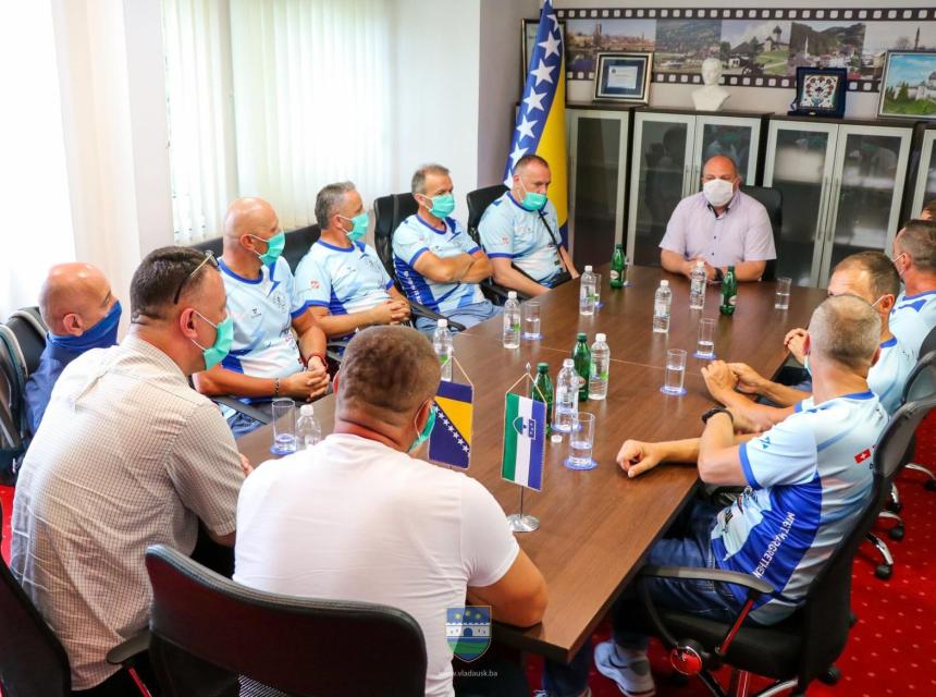 Mustafa Ružnić, premijer Unsko-sanskog kantona organizovao je, danas u Bihaću, prijem za članove Biciklističkog kluba iz švicarskog grada St. Margareten.