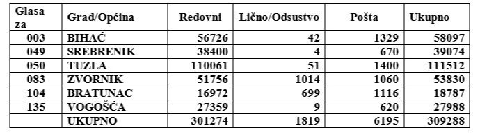 Usvojenom odlukom utvrđuje se broj upisanih birača u Centralni birački spisak, zaključno s podacima na dan 16.01.2023. godine u 24:00 sati, za potrebe provođenja prijevremenih izbora za gradonačelnike Grada Bihać, Tuzla, Srebrenik i Zvornik i načelnika općina Bratunac i Vogošća prema kojoj je u Centralni birački spisak upisano 309.288 birača, i to po općinama/gradovima.