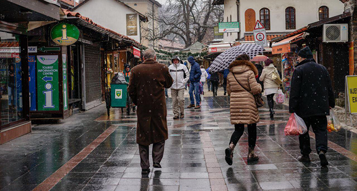U ponedjeljak se u BiH očekuje oblačno vrijeme sa kišom, a na planinama sa snijegom. U večernjim satima u nizinama centralne, istočne Bosne i u istočnim područjima Hercegovine je moguća susnježica i snijeg. U večernjim satima i u noći sa ponedjeljka na utorak na jugozapadu Bosne i u Hercegovini se očekuje jaka do olujna bura. Jutarnje temperature od četiri do deset, na jugu od deset do 14, a dnevne od osam do 14, na jugu do 16 stepeni Celzijusa. Prema kraju dana i u večernjim satima temperatura u padu.