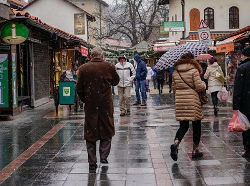 Jutros je u Bosni i Hercegovini umjereno do pretežno oblačno vrijeme. Ponegdje na istoku Bosne pada slaba kiša, a na planinama slab snijeg.