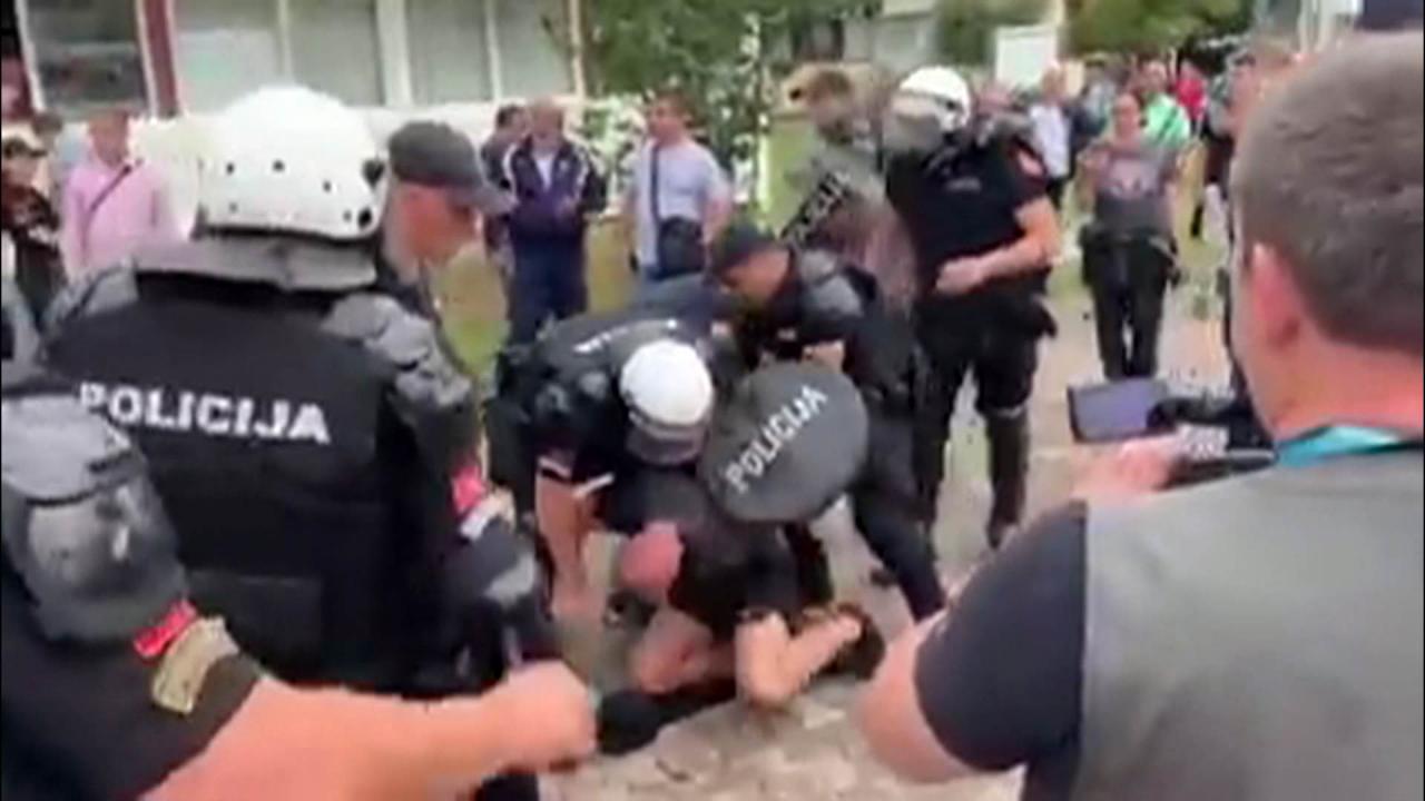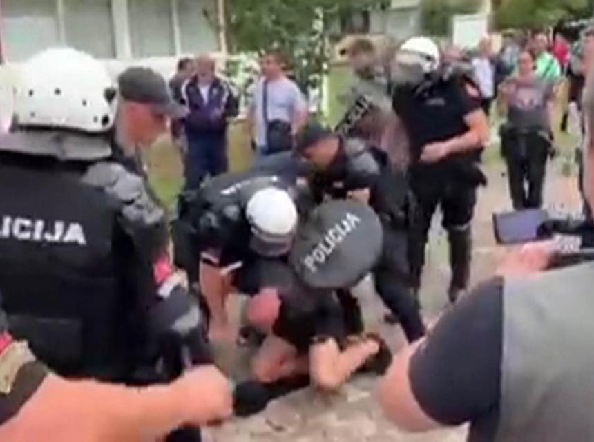 Poslije upozorenja, a potom i naređenja da se raziđu, okupljeni su se oglušili i prilikom intervencije policijskih službenika pružili su aktivni otpor gurajući policijske službenike, precizirala je Uprava policije.