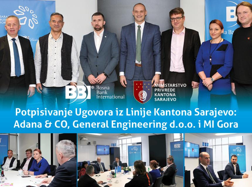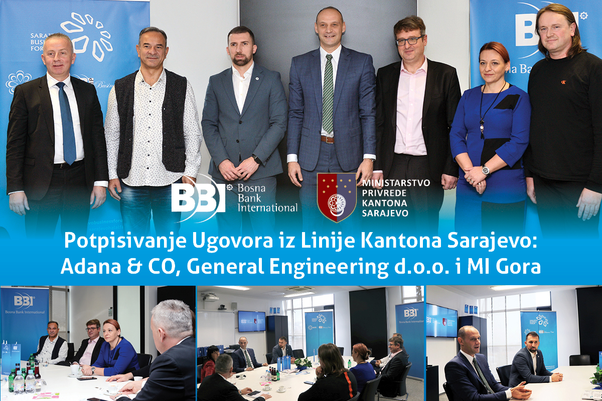 Danas je u prostorijama BBI banke upriličeno svečano potpisivanje novih ugovora sa kompanijama kojima su odobrena finansijska sredstva sa subvencioniranom profitnom maržom iz Linije Kantona Sarajevo. Finansijska sredstva su dodijeljena na osnovu Javnog poziva i Ugovora o poslovnoj saradnji između Ministarstva privrede KS i Bosna Bank International (BBI). Riječ je o kompanijama koje dolaze iz oblasti proizvodnje hrane, metalske industrije i elektro-inžinjeringa.