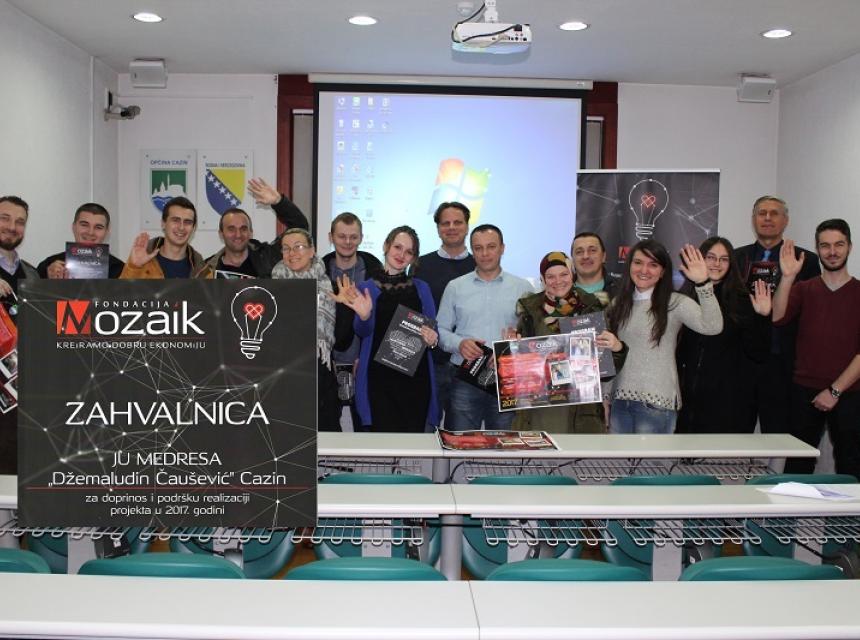 S tim u vezi Grad Cazin i Fondacija mozaik dodjelili su zahvalnicu i Medresi Džemaluddin-ef. Čaušević koja je doprinjela realizaciji projekta.