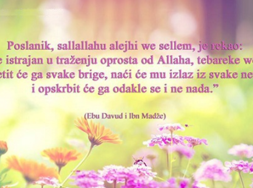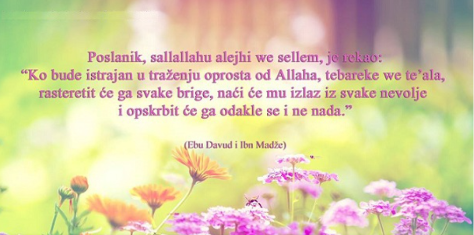 Uzvišeni Allah, dž.š., kaže: “i koji se kada grijeh počine ili kad se prema Allahu ogriješe, Allaha sjete i oprost za grijehe svoje zamole – a ko će oprostiti grijehe ako ne Allah!? – i koji svjesno u grijehu ne ustraju.” (Ali ‘Imran, 135.)