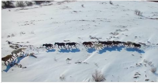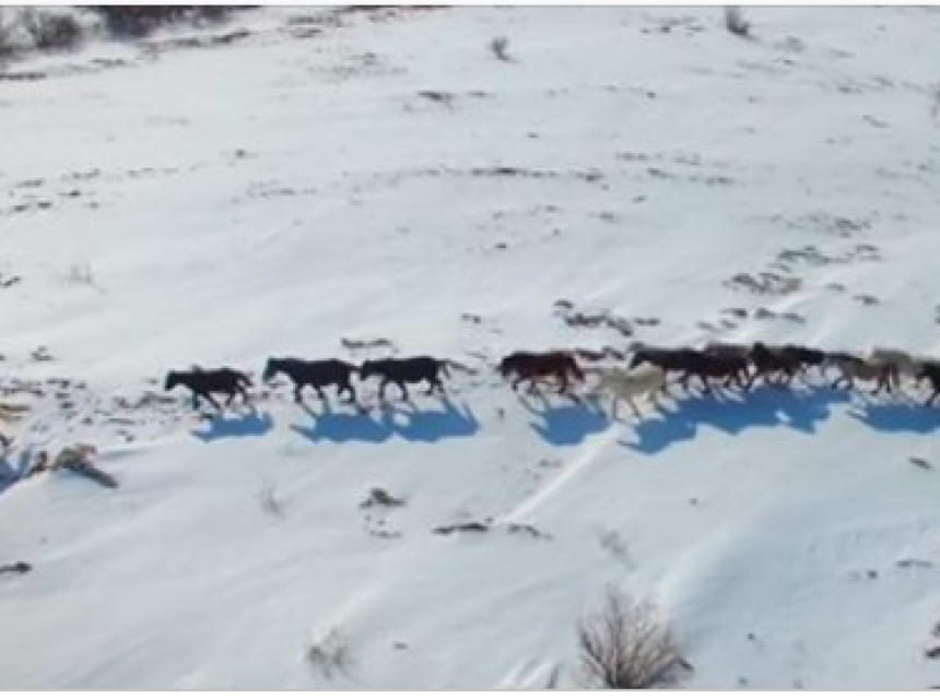 Snježni ambijent u Hercegovini ovih dana inspirirao je ekipu "Helifilma" koja je dronom snimila konje u trku.