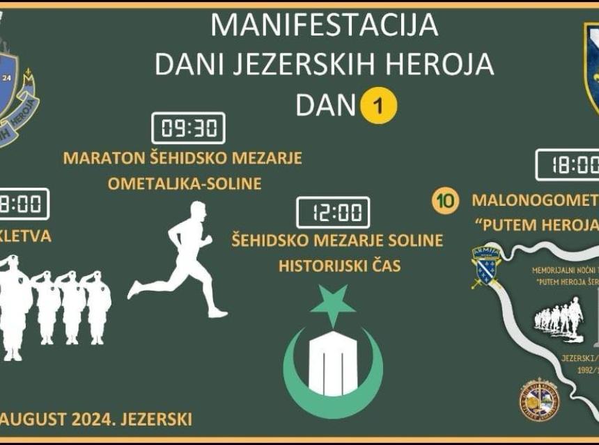 Tokom 'Dana Jezerskih Heroja', planirane su različite aktivnosti koje će odati priznanje i slaviti hrabrost, odanost i požrtvovanost najvećih sinova ove zemlje. To uključuje polaganje zakletve ispred spomen obilježja u Jezerskom, svečanog maratona na relaciji šehitluka Ometaljka-Soline, promocije knjige komadanta 505. VMTBR, sportske događaje te neizostavni ovogodišnji 10. malonogometni turnir „Putem Heroja Šerbule“ koji se igra njima u čast.