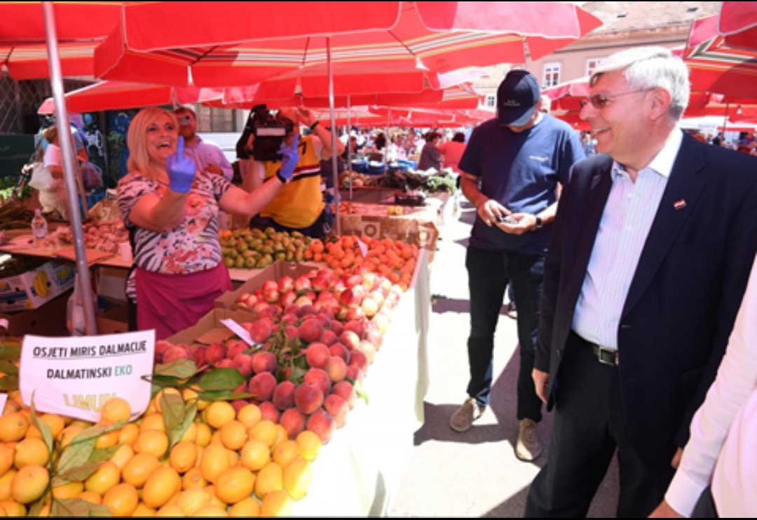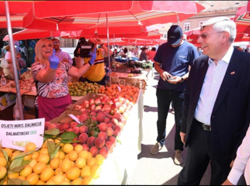 Dok su HDZ-ovci obilazili štandove jedna je prodavačica u njihovom smjeru podigla dva srednjaka.