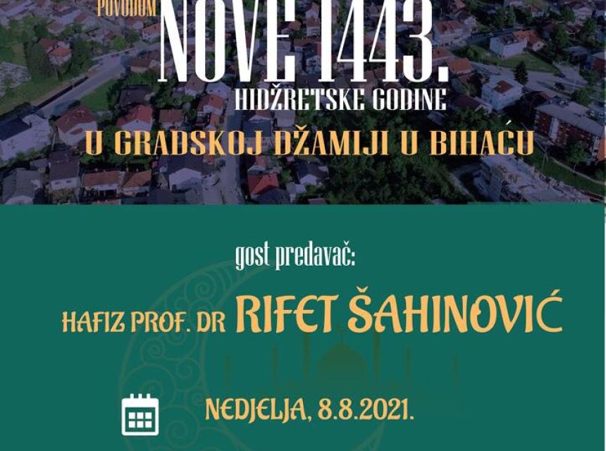 U Gradskoj džamiji u Bihaću će biti upriličen prigodan program i vaz-i nasihat kojeg će održati prof. dr. Rifet Šahinović, profesor na Islamskom pedagoškom fakultetu u Bihaću i medresi "Reis Džemaludin-ef. Čaušević" u Cazinu.