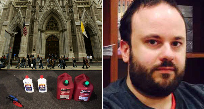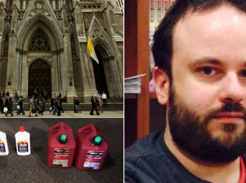 U katedrali St. Patrick u New Yorku uhapšen je muškarac sa kanisterima benzina, bočicama zapaljive tečnosti i upaljačem.