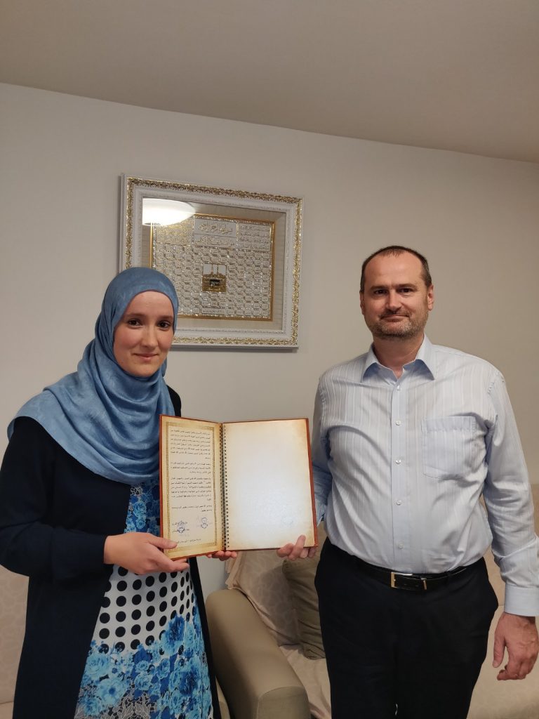 Time je stekla zvanje prve žene kurra hafize u Bosni i Hercegovini. Svoj posljednji ispit je položila pred najeminentnijim stručnjakom kiraetske nauke kod nas kurra hafizom Dževadom Šošićem.
