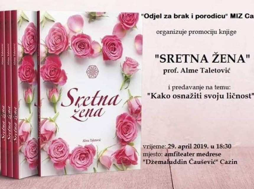 O tome, ali i o mnogim drugim smjernicama govorit će se na promociji nove knjige autorice Alme Taletović pod nazivom "Sretna žena", koja će u ponedjeljak, 29. aprila, uz promociju knjige u Cazinu održati i predavanje na temu "Kako osnažiti svoju ličnost".