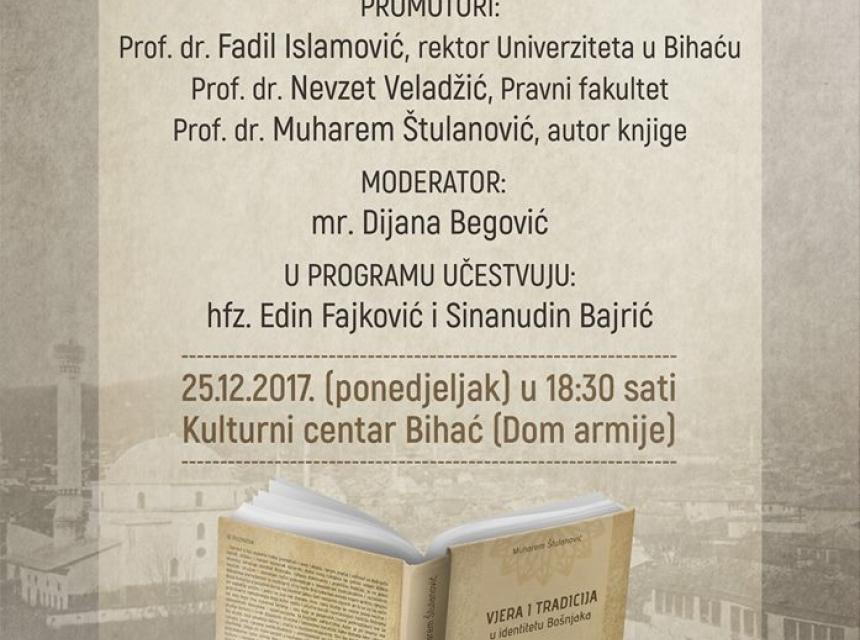 Promotori ovog značajnog djela će biti: prof. dr. Fadil Islamsković, rektor Univerziteta u Bihaću, prof. dr. Nevzet Veladžić, profesor na Pravnom fakultetu Univerziteta u Bihaću i autor knjige prof. dr. Muharem Štulanović, profesor na Islamskom pedagoškom fakultetu u Bihaću.