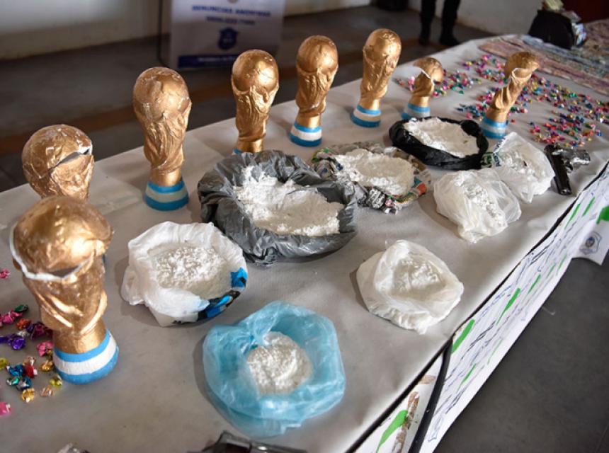Zvaničnici su rekli da je zaplijenjeno 20 kilograma marihuane, 10 kilograma kokaina, 1.800 doza krek-kokaina poznatog kao "paso" i 400.000 argentinskih pezosa.
