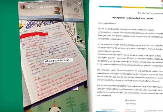 Prema onome što se može vidjeti na storyjima, učiteljica je objavila fotografije radova učenika te njihove greške, a iznad svega je stajao natpis na turskom "Voljela bih da je ovo sve samo zabava".