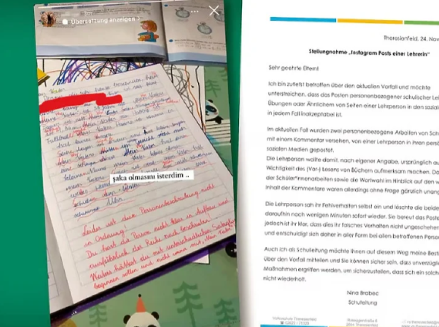 "Dok je provjeravala domaći zadatak mog sina, učiteljica ga je fotografirala te podijelila na svom Instagram nalogu. Ismijavala je pravopisne greške mog sina", navodi majka djeteta u izjavi za Heute.