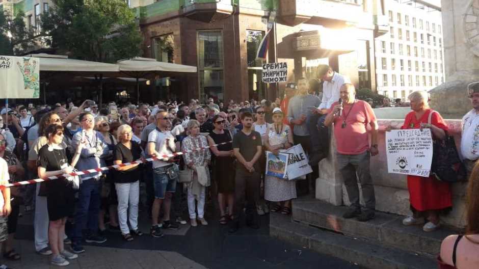 Građanima se obratio jedan od organizatora Srđan Marković, zatim Srđan Milivojević, bivši akitivista "Otpora" i član DS, kao i Nikola Jovanović, potpredsjednik Narodne stranke, koji je početkom ove nedelje i privođen.