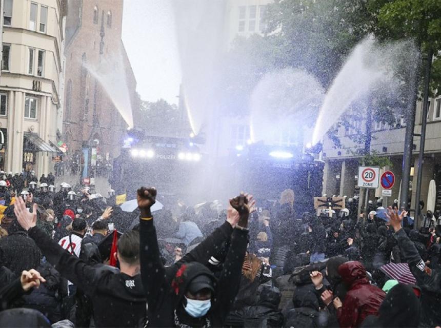 Policija u njemačkom gradu Hamburgu upotrijebila je biber sprej protiv demonstranata i rasporedila je vodene topove nakon što su protesti u znak podrške američkim antirasističkim skupovima protiv policijske brutalnosti prerasli u nasilje.