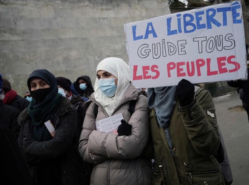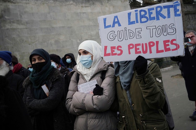 Grupa muslimanskih, antirasističkih, ljevičarskih, propalestinskih i drugih aktivističkih organizacija organizovali su današnji skup u blizini Trga Trokadero preko puta Ajfelove kule sa zahtjevom da se nacrt zakona povuče. U mirnom protestu učestvovalo je oko 150 ljudi, uključujući muslimane i nemuslimane, javlja Rojters.