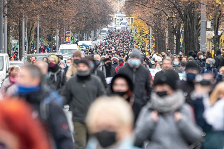 Jedna žena je govorila na sceni u subotu uveče u Hanoveru na sjeveru, rekavši kolegama demonstrantima da se osjeća kao Sofi Šol, budući da je aktivna u otporu, drži govore, odlazi na proteste, distribuira flajere.