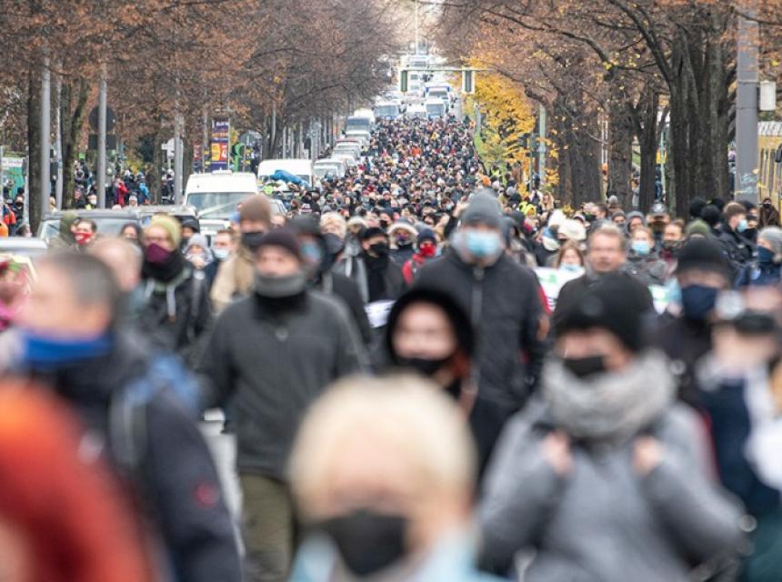 Nekoliko ljudi koji su protestovali zbog ograničenja protiv virusa korona u Njemačkoj pokušali su da se prikažu kao žrtve vladinog progona.