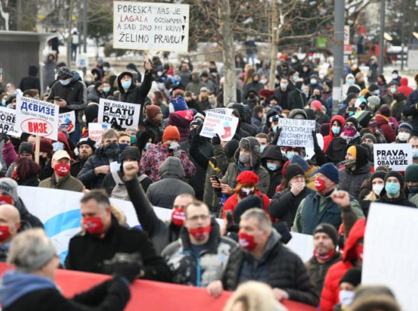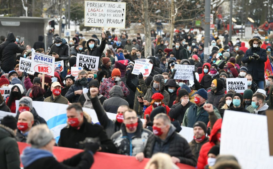Za to vrijeme, traže da se obustavi, kako su naveli, “poreski progon”. Ovo su dva osnovna zahtjeva radnika na internetu upućena sa velikog protesta ispred Narodne skupštine u Beogradu, javlja Nova.rs.