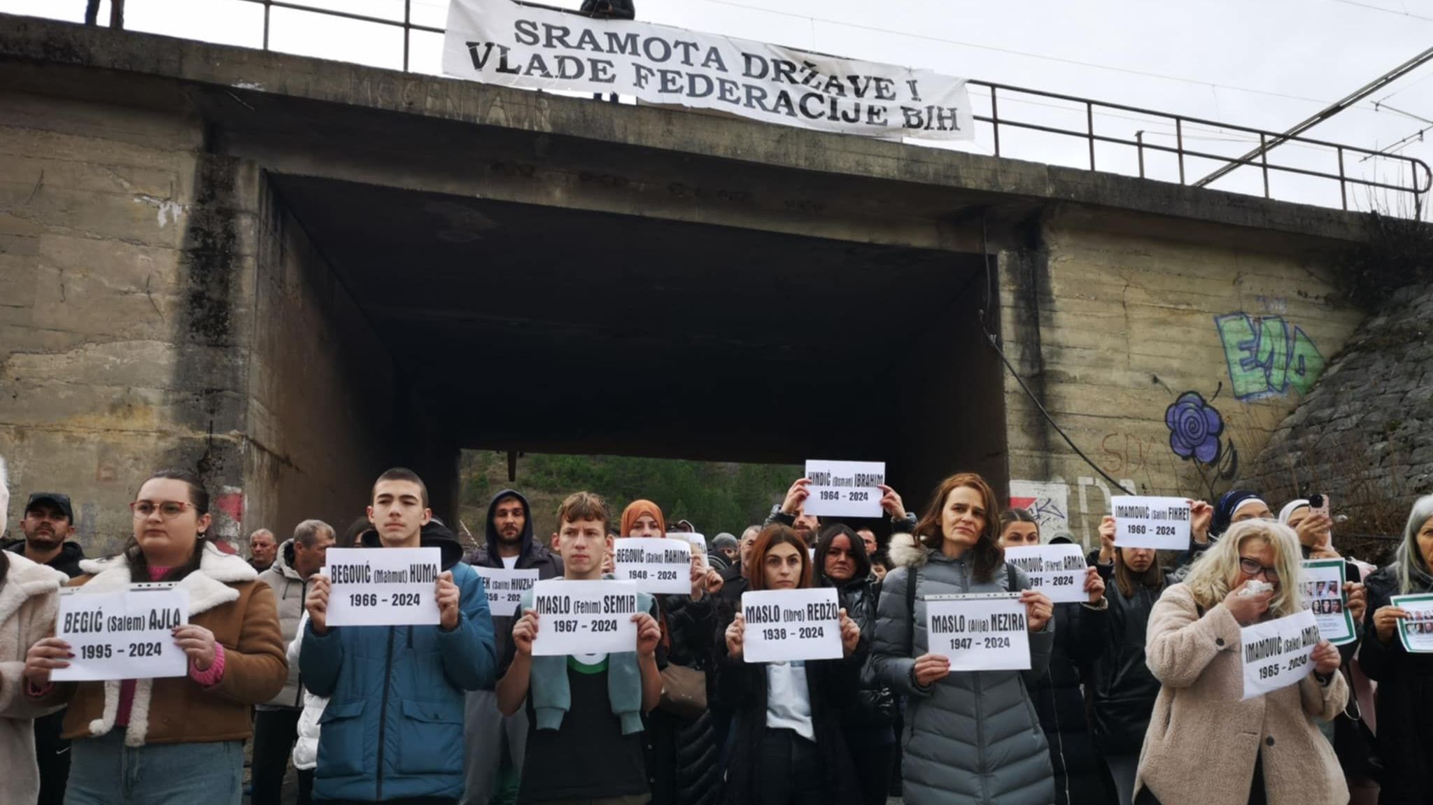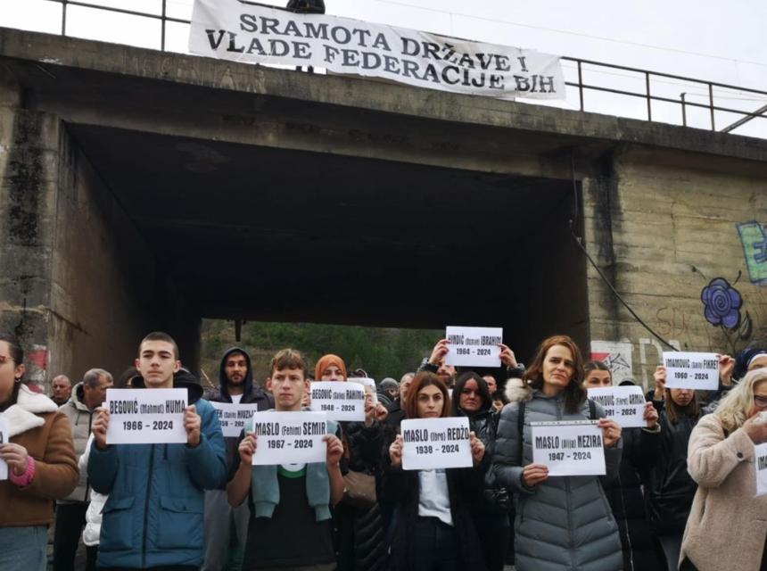 Nakon 19 minuta blokade magistralne ceste M-17 mještani su u koloni krenuli do željezničke stanice.
