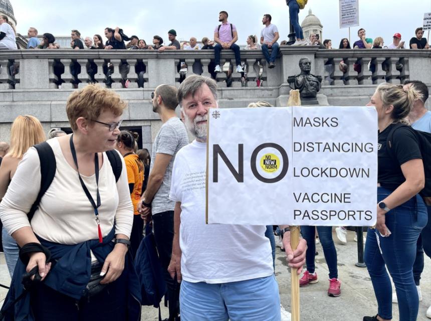 Hiljade građana okupilo se danas na protestima protiv epidemioloških mjera i vakcina protiv koronavirusa na Trgu Trafalgar u Londonu, javlja Anadolija.