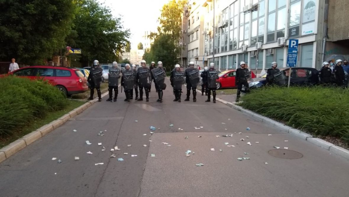 Naime, građani ispred koridona policije bacaju papirne novčanice.