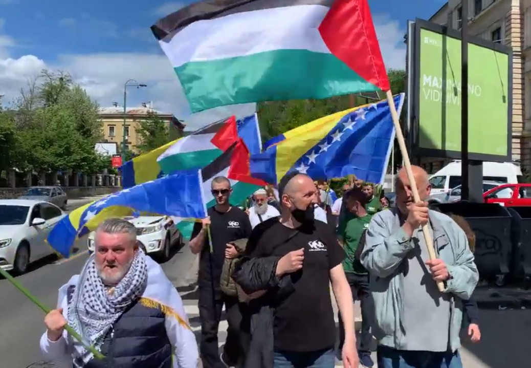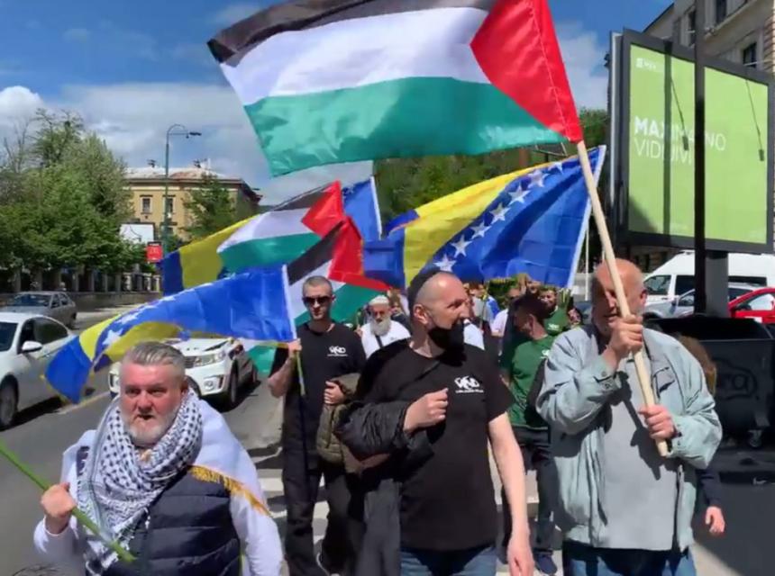 Nekoliko stotina Sarajlila okupilo se danas u centru bh. prijestonice kako bi mirnom protestnom šetnjom pružilo podršku palestinskom narodu zbog stradanja ratnom sukobu s Izraelom.