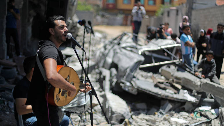 Palestinski glazbenici održali su u utorak koncert u uništenom dijelu Gaze kao alternativu raskošnom natjecanju Eurosongu koji se trenutačno odvija u Tel Avivu.