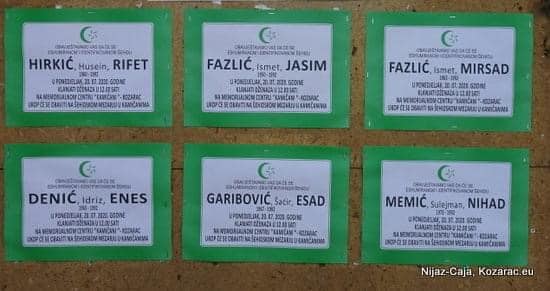 Radi se o pet žrtava koje su pronađene na lokalitetu Koričanske stijene; Memić Nihad, Hirkić Rifet, Fazlić Mirsad, Fazlić Jasim i Garibović Esad. Dok je šesta žrtva Denić Enes pronađen na lokalitetu Jablanica-Prosara, općina Bosanska Gradiška. Predviđeno je da kolona stigne na Trg ljiljana u Sanski Most u 17:30, gdje će se proučiti Fatiha i odati poštovanje žrtvama. A njihov dolazak na mjesto dženaze u memorijalni centar „Kamičani“ u Kozarcu, predviđeno je za 19 sati.