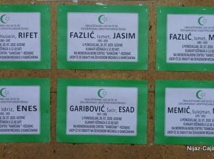 Vjerski program uoči dženaze počinje u 12:15 minuta. U 13:00 će biti klanjan podne namaz, a potom salla i dženaza namaz. Prisutnima će se obratiti vrhovni poglavar Islamske zajednice reisu-l-ulema Husein-ef. Kavazović. Nakon dženaze i dove, uslijedit će ukop žrtava u šehidsko mezarje „Kamičani“.
