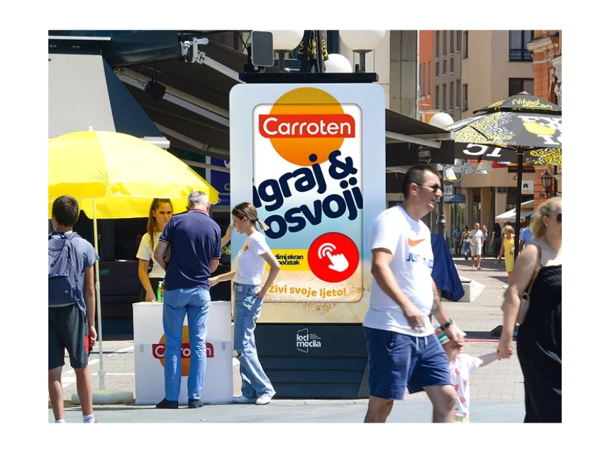 Tokom kampanje prikazivan je UV indeks zračenja u realnom vremenu sa preporukom za odgovarajuće Carotten proizvode. Za kraj kampanje na city lightu koji posjeduje touch screen realizovan je interaktivni kviz. Tom prilikom građani su imali priliku da se zabave, saznaju informacije o proizvodima i dobiju poklon proizvode sa UV zaštitnim faktorom.