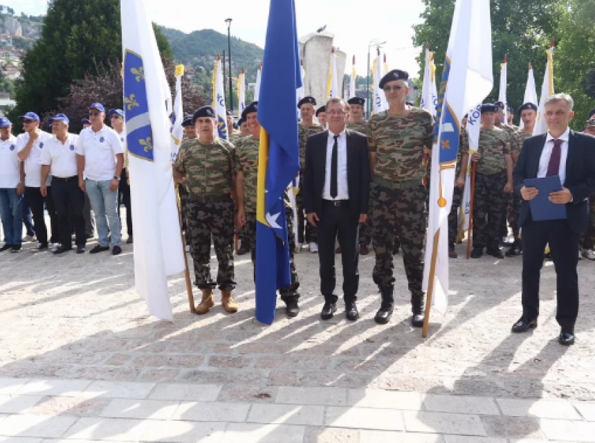 Prvi korpus slavi rođendan: U centru Sarajeva postrojeni bivši borci sa zastavama Armije RBIH