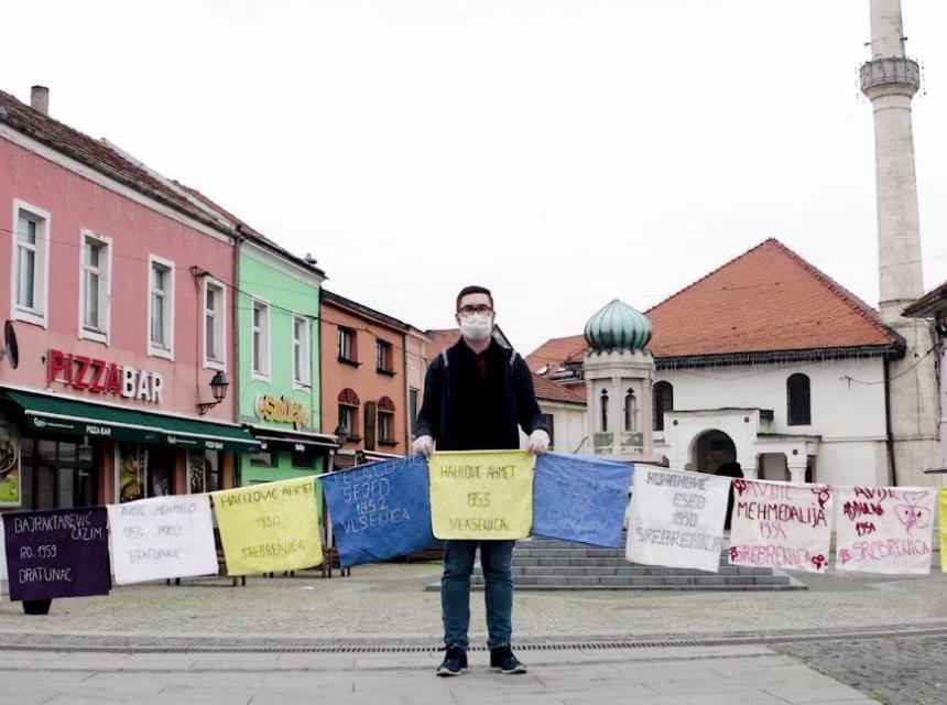 Zbog pandemije korona virusa one su ostale u svojim kućama, a volonteri iz Tuzle, kao znak podrške majkama i ženama Srebrenice, danas su na Trgu Slobode organizovali performans čiji je cilj da se ne zaboravi genocid u Srebrenici.
