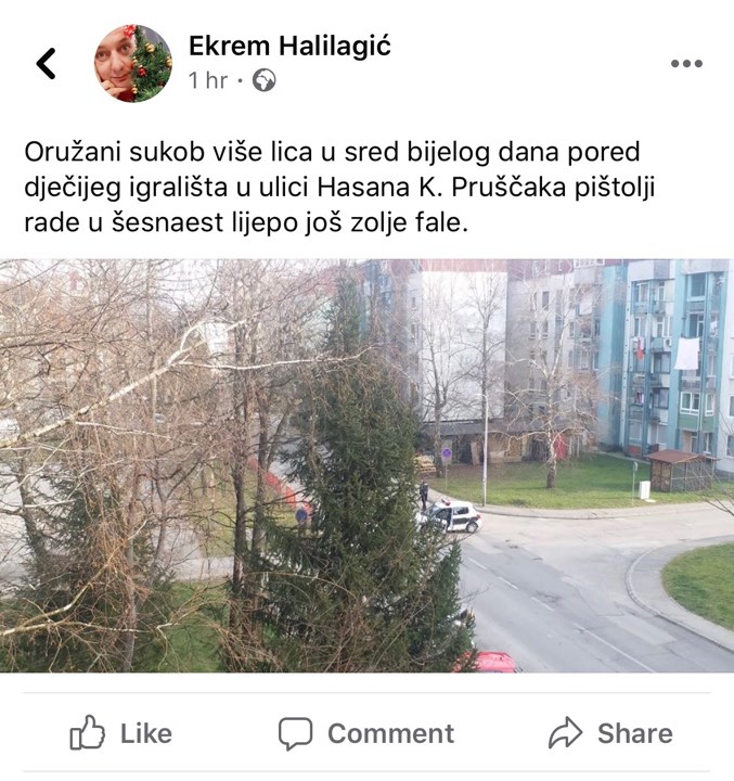 Danas je popodne u ulici Hasana K. Pruščaka desio se oružani sukob više lica u sred bijelog dana. Ono što je posebno zabrinjavajuće taj prostor je neposredno u blizini školskog igrališta. Više detalja o ovom slučaju objavićemo naknadno.