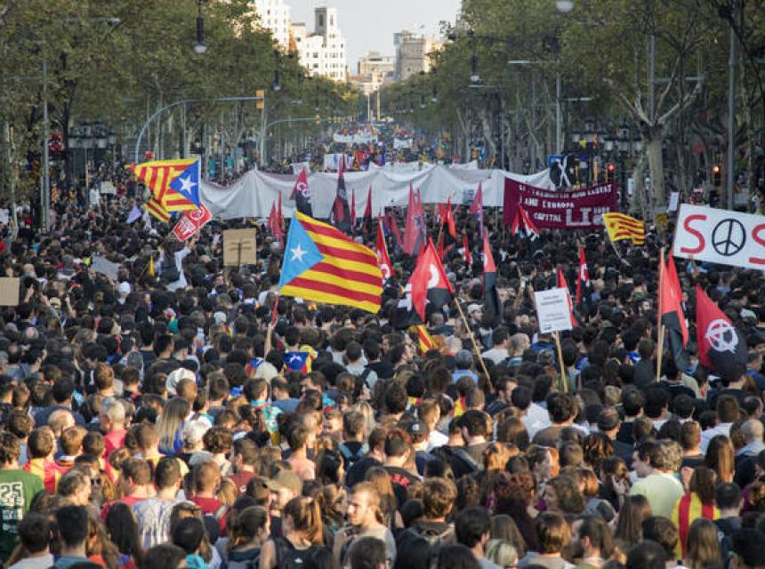 Istovremeno, u prosvjedima na ulicama katalonskih gradova sudjelovale su stotine tisuća ljudi, među kojima uglavnom studenti, vatrogasci i obični građani ogorčeni zbog toga što su nacionalna policija i civilna garda u nedjelju upotrijebile silu nad prosvjednicima.