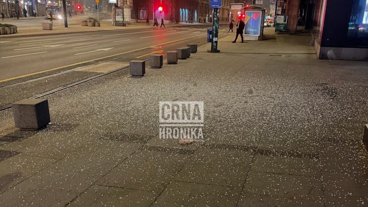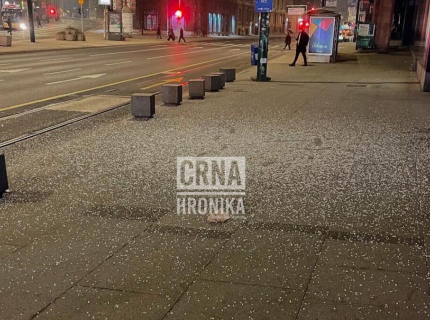 Obezbjeđenje centra trenutno čisti razbijeno staklo. Povrijeđenih osoba nije bilo.