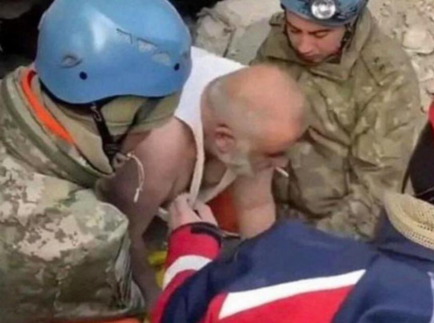 Video je objavilo tursko Ministarstvo odbrane, koje je saopštilo da je snimljeno u razorenom stambenom kompleksu u Adijamanu u srijedu ujutru. U pitanju je Soner Tugtekin, a na snimku se čuje kako pripadnik hitne pomoći na turskom jeziku kaže “Ujače, samo baci tu cigaretu i lezi na leđa. Daću ti jednu kad budemo u bolnici”.