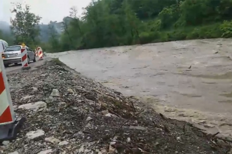 Na putu Banjaluka-Čelinac u mjestu Zeleni vir voda iz vještačog jezera izbila je preko pruge.